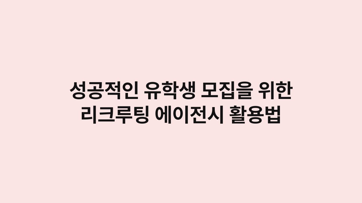 리크루팅 에이전시는 유학생 모집에서 중요한 역할을 수행합니다.